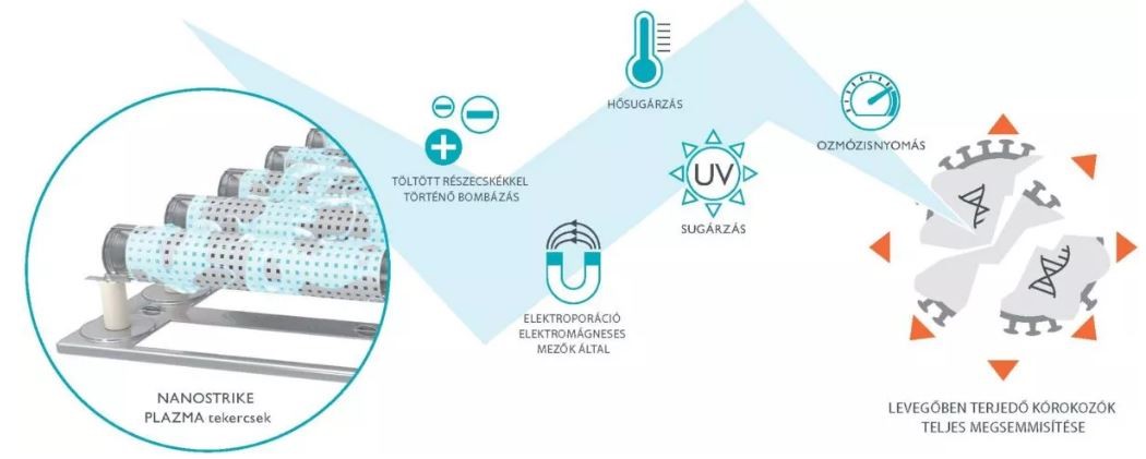 A készülék a plazmatekercs közvetlen környezetében a levegőt ionizálja (energizálja), és ebben a reakciótérben olyan összetett fiziko-kémiai folyamatok zajlanak le egyidejűleg, melyeknek semmilyen kórokozó vagy szerves anyag nem tud ellenállni. A plazmatérbe kerülő sejteket, illetve az allergiás reakciót kiváltó, irritáló, illetve szagterhelést okozó szerves molekulákat az elektromágneses tér durva szakító, húzó erőkkel rongálja, amely visszafordíthatatlan szerkezeti károsodásokat okoz. A maradék anyagdarabokat pedig erős elektron és UV besugárzás éri, kiegészülve a plazmatérben létrejövő szabad gyökök oxidáló hatásával.